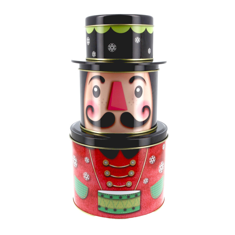 Boîtes à biscuits de Noël Set de 3 à empiler casse-noisette