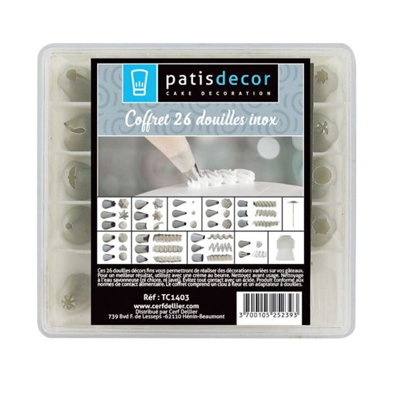 Coffret contenant 26 douilles à décors en acier inoxydable : tout pour la décoration à la poche à douilles en glace royale ou butter cream.
