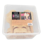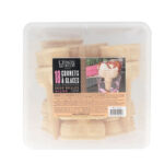 Ingrédients : farine de blé (gluten), amidon de pomme de terre, amidon de blé (gluten), graisse de palme, farine de soja, émulsifiant : lécithine de soja, stabilisant E460, caramel, sel, bicarbonate de sodium, édulcorants E954-E950.