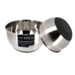 Bassine cul-de-poule en acier inoxydable avec un fond revêtu de silicone. La bassine reste stable et ne dérape pas lors du travail.