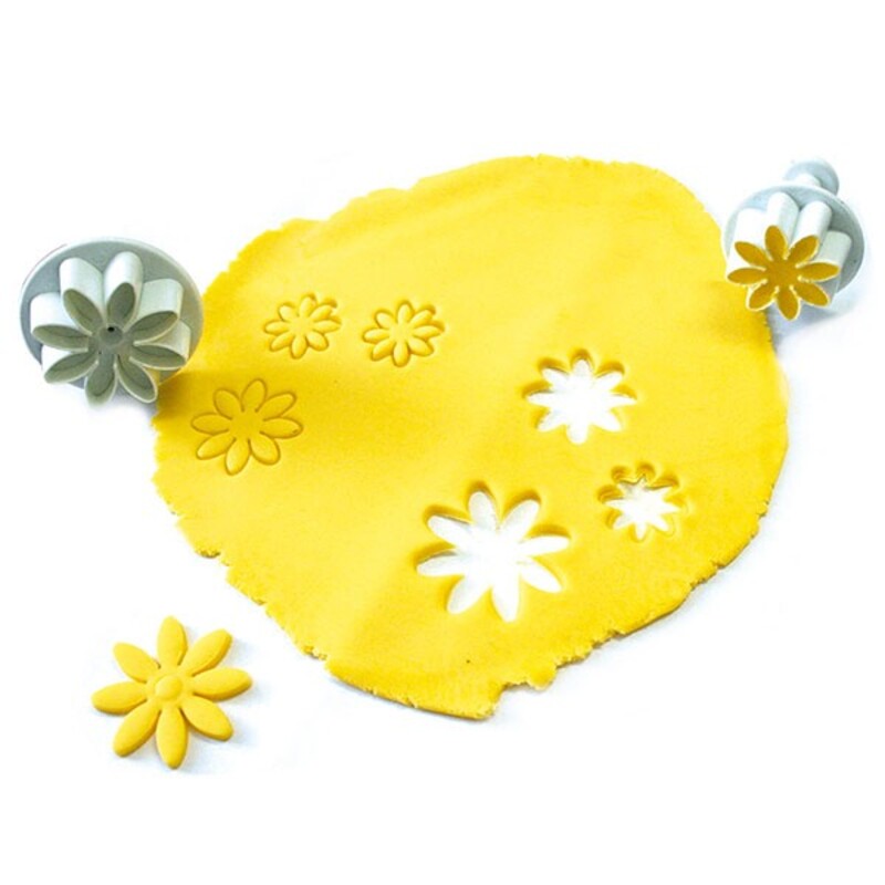 Ensemble de 4 découpoirs poussoirs Marguerite de tailles assorties, pour la confection de vos fleurs en pâte a sucre ou la pâte d’amande.