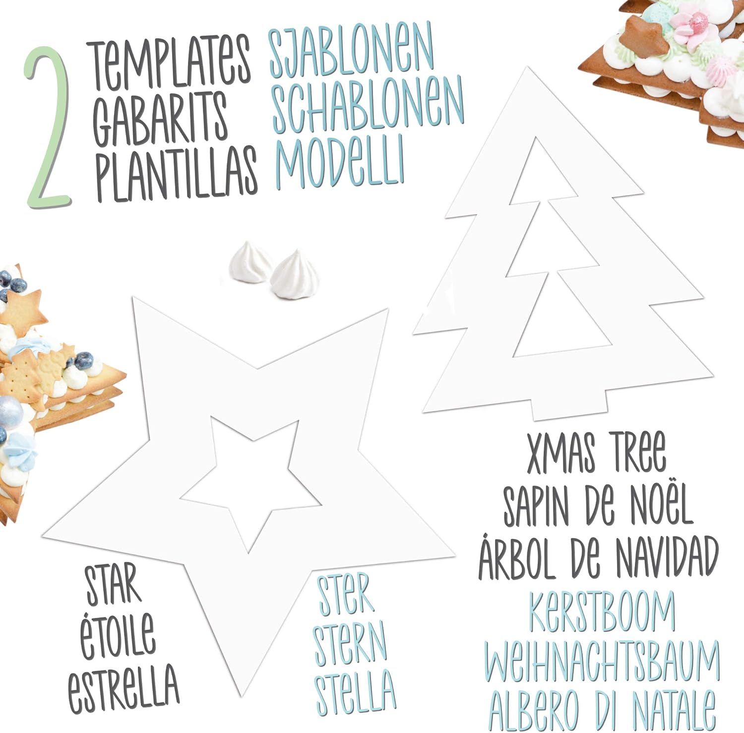 DES ACCESSOIRES DE QUALITÉ – Pratiques, les gabarits sont en plastique apte au contact alimentaire, lavables et réutilisables. Dimensions étoile : 15,5 x 26,8 cm. Dimensions sapin : 25 x 30 cm