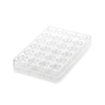 Vous pourrez donc réaliser des chocolats gourmands à souhait en les garnissant d’inserts aux fruits ou au pralin par exemple. Tout ce dont vous aurez besoin c’est de chocolat de couverture et d’un peu de patience. Le moule à chocolat demi-sphère en tritan passe au réfrigérateur et au congélateur afin de faire prendre vos chocolats de façon optimale, et il en est de même pour l’insert en silicone.