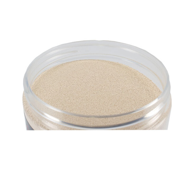 Pot en verre de 50 g de levure de boulanger sèche instantanée.