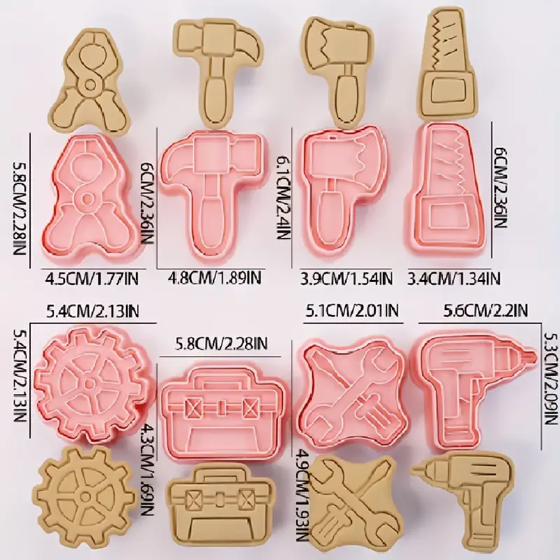 8 motifs : cet ensemble d’emporte-pièces est livré avec un total de 8 motifs pour répondre à vos besoins pour tout style de fabrication de biscuits sur le thème des outils