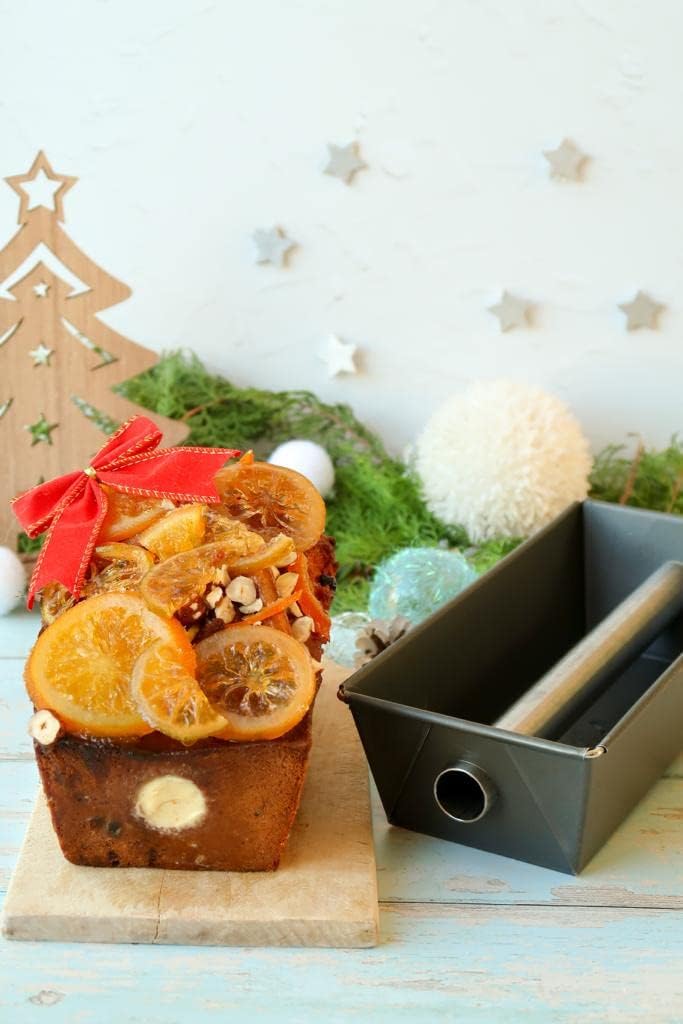 Moule à cake en acier revêtu et son insert tube inox, parfait pour la réalisation de cakes fourrés.
