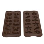 Le moule friture marine Easy Choc possède 12 empreintes aux motifs variés représentant des poissons et des coquillages.