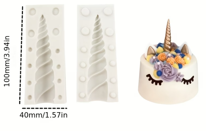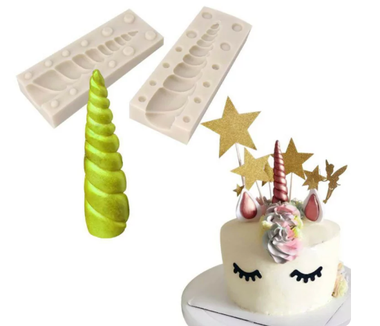Set de 2 Moules en silicone Corne de licorne , pour décorer vos gâteaux , cupcakes et autres pâtisseries .