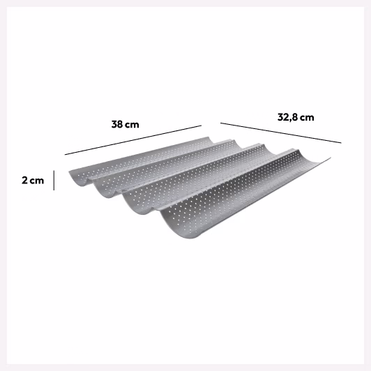 La perforation de la Plaque à Pain permet une bonne répartition de la chaleur pour une cuisson de votre pain unie et croustillante. Cette Plaque de Cuisson 4 Baguettes est également adaptés à la cuisson de tuiles.