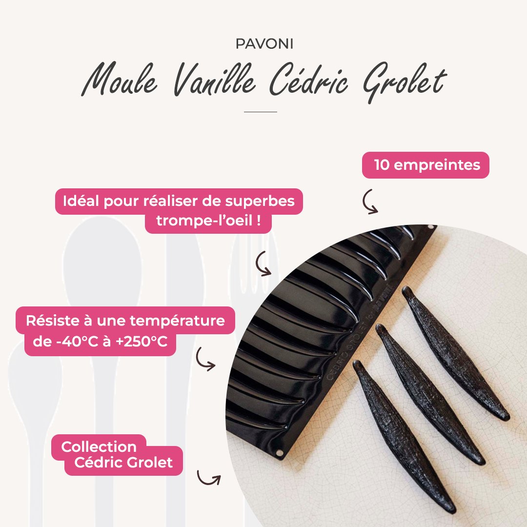 Apportez une touche d’exception à vos desserts avec le Moule Silicone Vanille Pavoflex, imaginé par le grand chef pâtissier Cédric Grolet, maître incontesté du trompe-l’œil sucré.