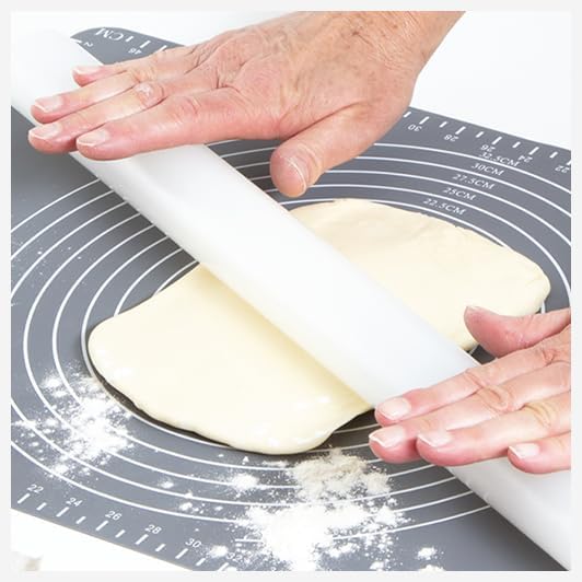 Un des basiques du travail de la pâte à sucre pour étaler, puis manipuler la pâte à sucre étalée – à utiliser en complément du tapis en silicone et du lissoir pâte à sucre.Longueur : 50 cm