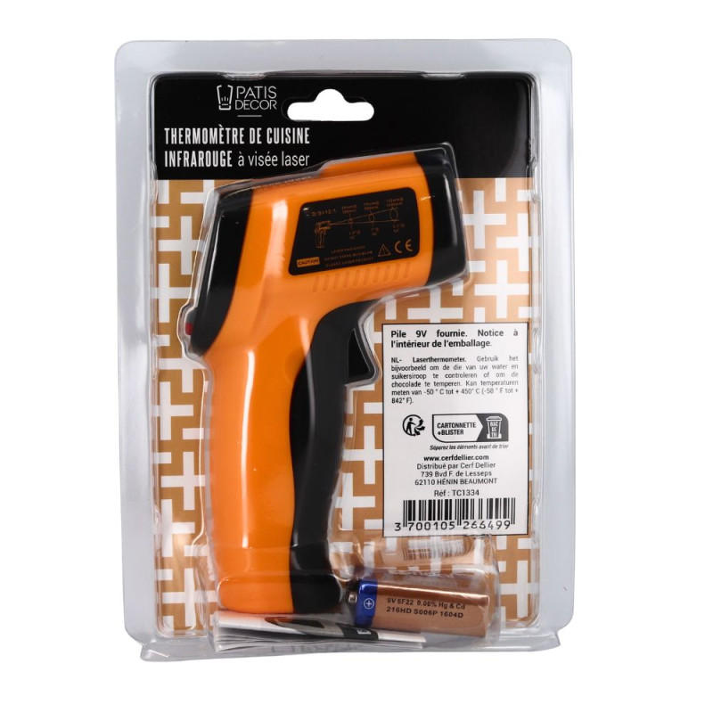 En effet, le thermomètre infrarouge ne prend pas la température au cœur des aliments ou des préparations comme le fait un thermomètre à sonde, mais simplement en surface et à distance.