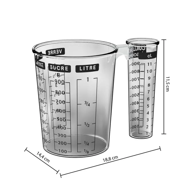 Design & pratique, équipez votre cuisine avec ce Verre Doseur « Double » 18cm Transparent qui saura répondre à tous vos besoins. Vous saurez apprécier la praticité de son double doseur qui vous permettra plusieurs utilisations différentes.