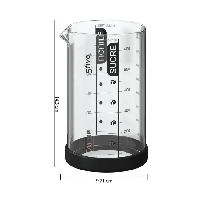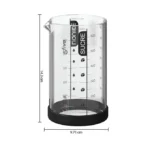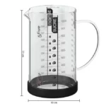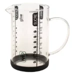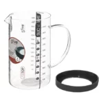 Fabriqué en verre transparent de haute qualité, il est doté d’un support en silicone noir élégant qui offre une prise en main sûre et confortable. Les mesures graduées claires vous permettent de mesurer avec précision les liquides, que ce soit pour la cuisson, la pâtisserie ou la préparation de boissons.